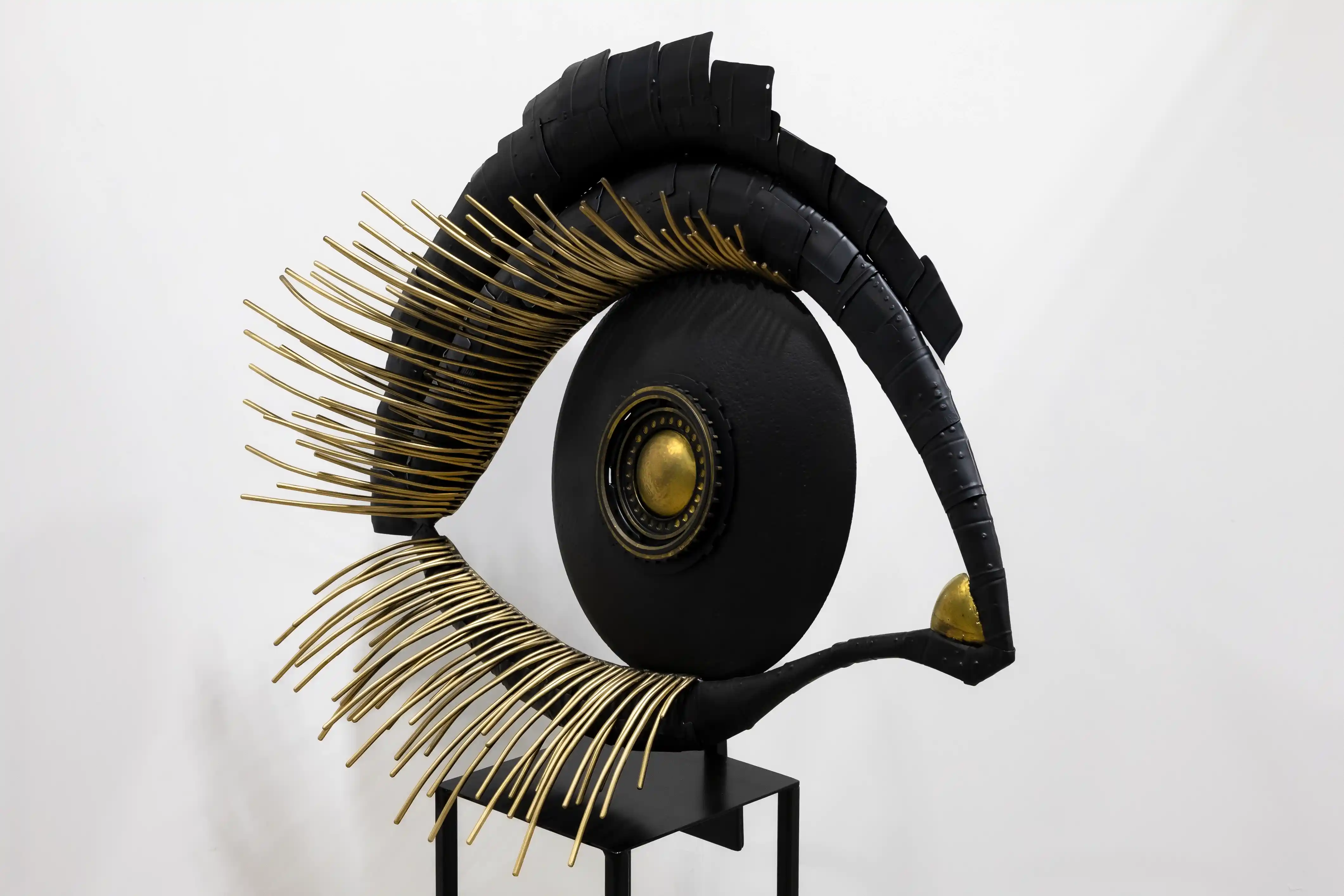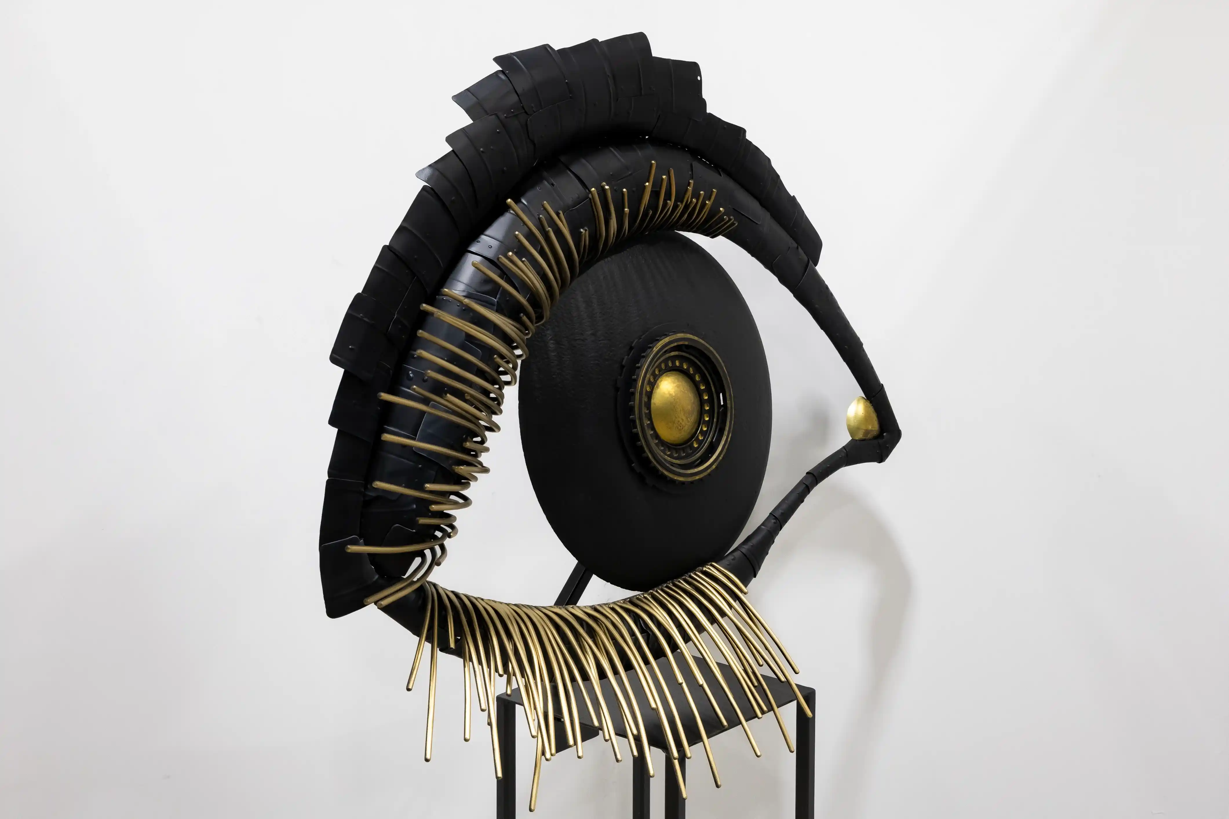 A vision of awareness and observation, "Eye of Clarity" embodies the theme of perception and truth. The hollow structure reflects both physical lightness and conceptual depth. This piece invites viewers to consider what is seen versus what is understood. Dimensions: 34" H x 42" W x 9" D