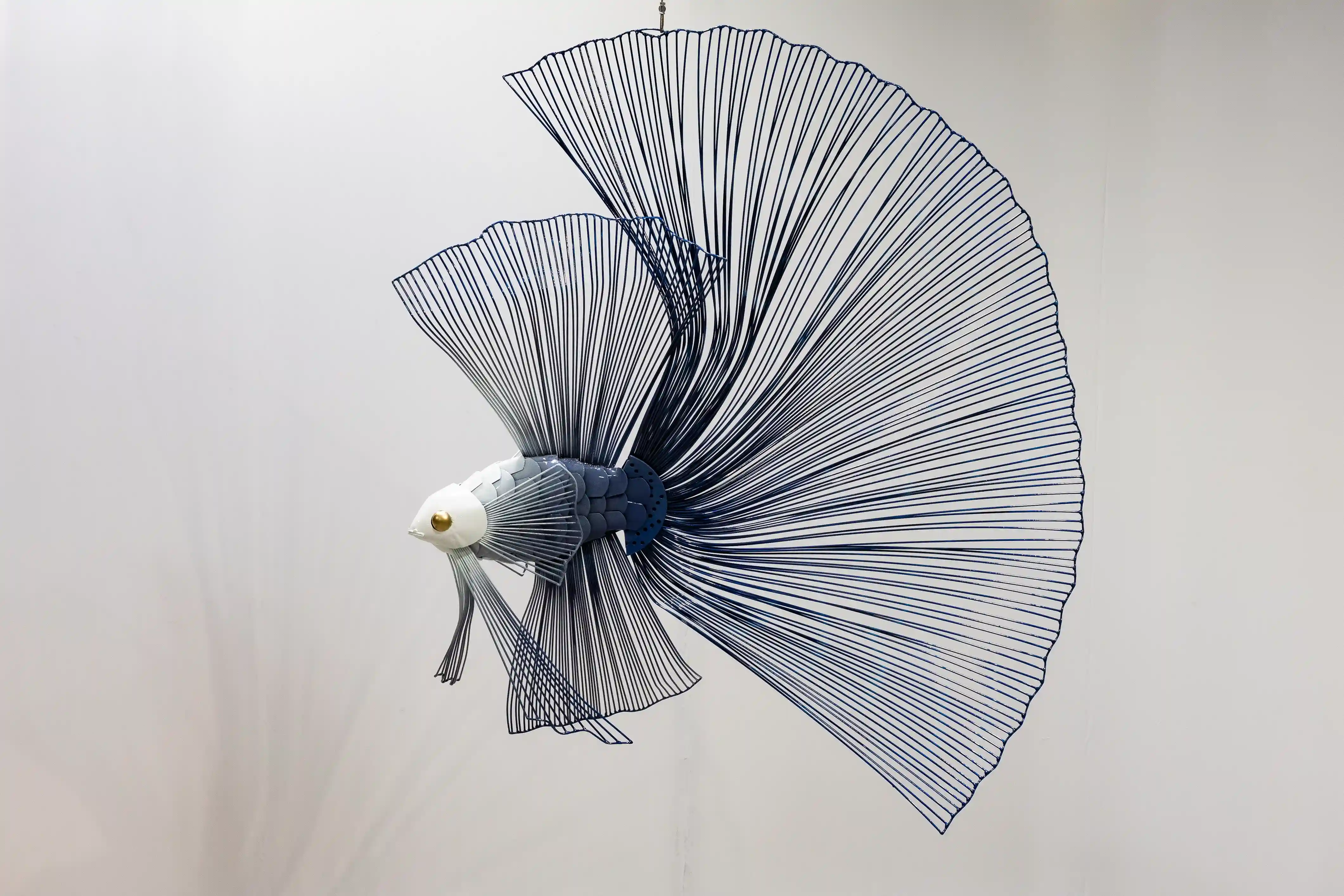 With flowing fins and harmonious form, Flow of Fortune evokes the graceful movement of energy and the quiet arrival of abundance. Dimensions: 47½" H x 45" W x 16" D